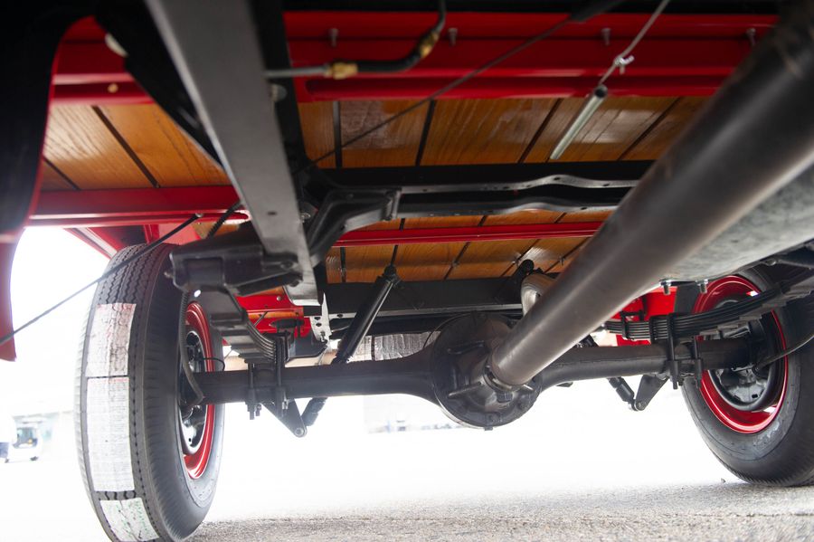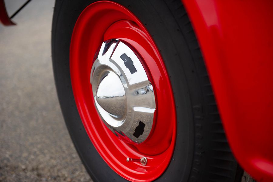 There is NO bodywork on this truck. No rust ever not even surface rust. his double deluxe truck has been frame off restored with NOS parts and or perfect sheet metal. Radio and all radio components, Deluxe air flow heater, Wiring, Floormat, Cig Lighter, Glove box light, Tailgate chains, Tailgate, Tailgate Trinions, All lights, T3 Bulbs, Hood latch, Hood hinges, All door parts, Shocks, Regulator, Fan shroud, Gas tank sending unit. And the list goes on.