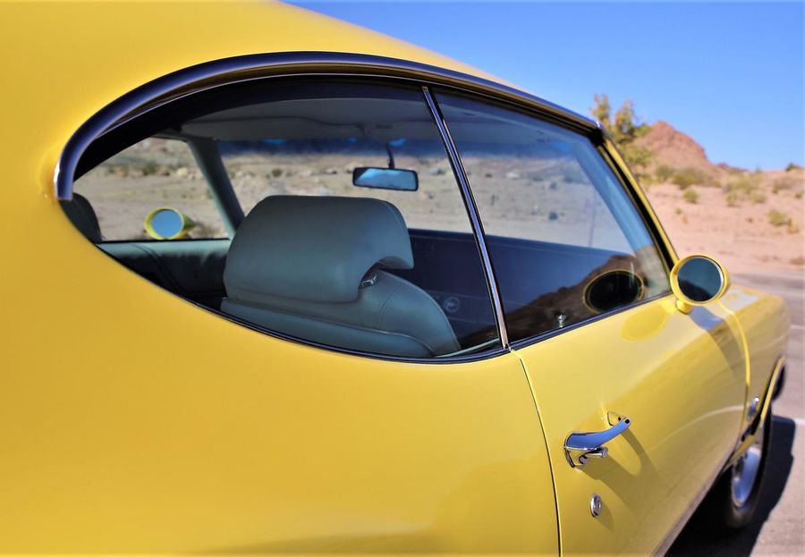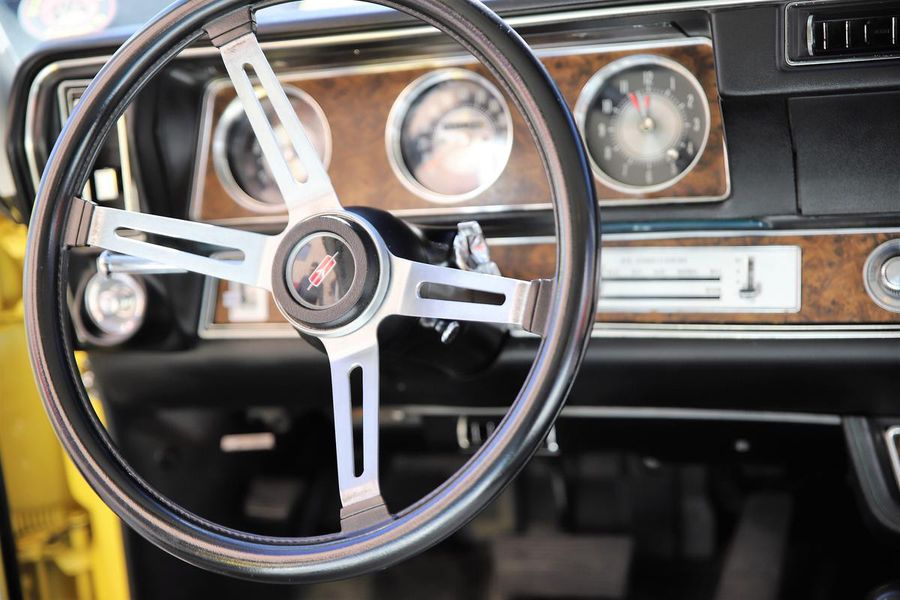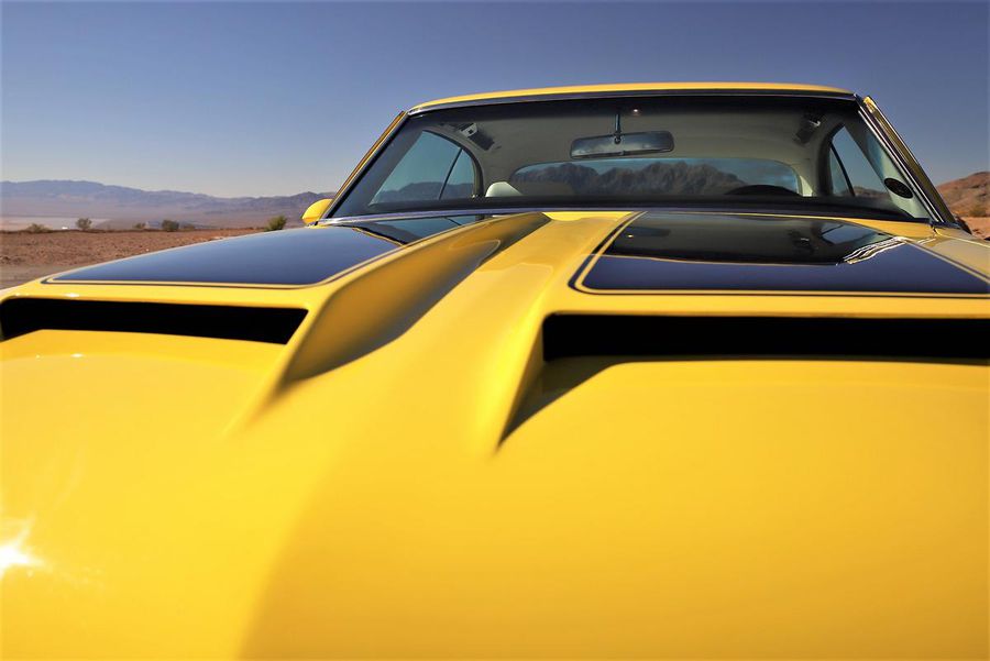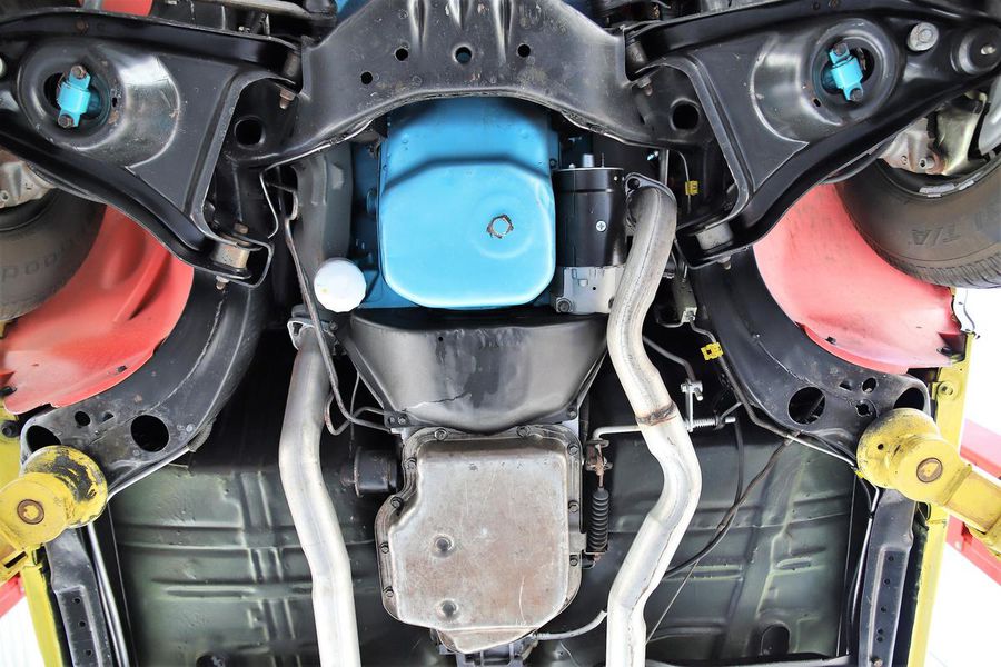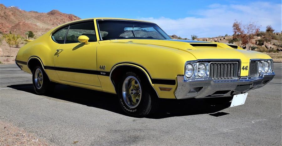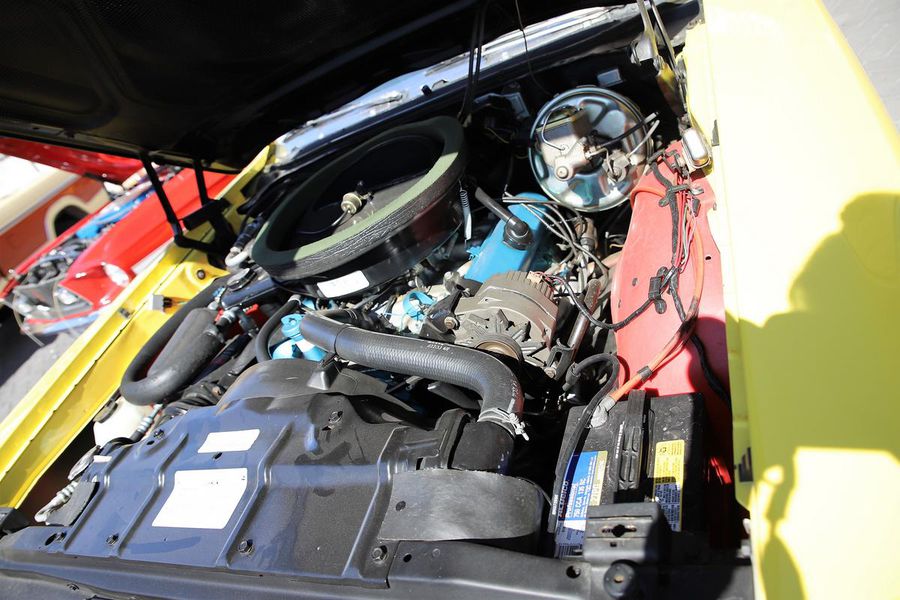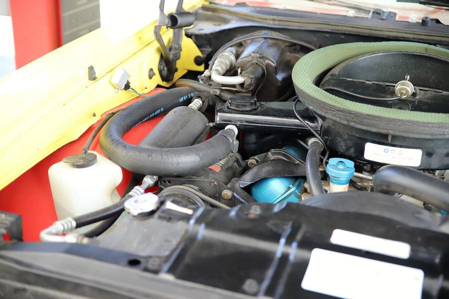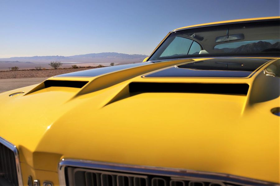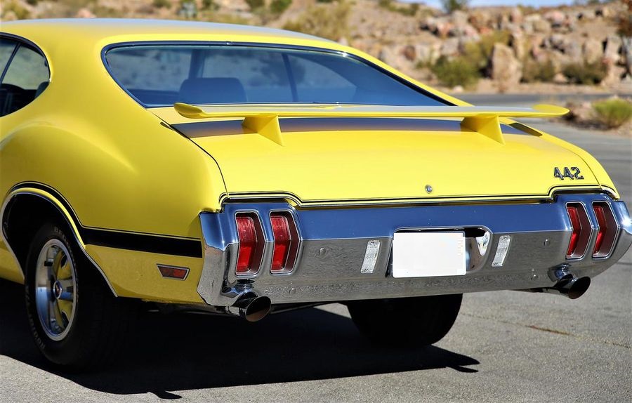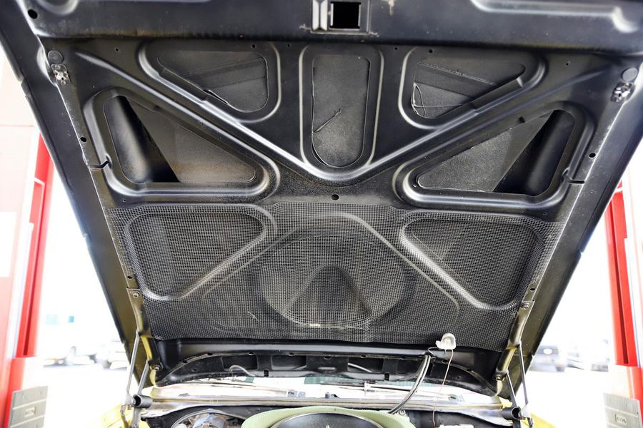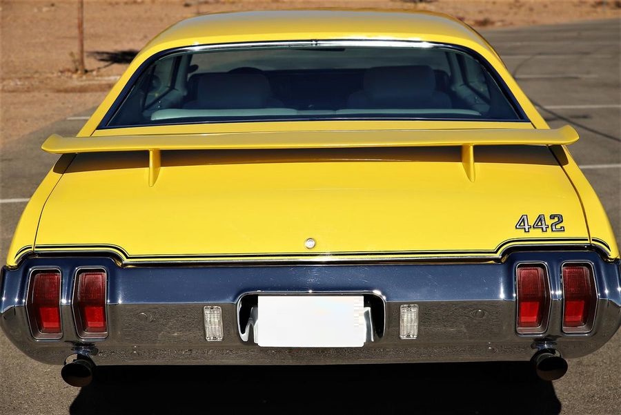A stunning concourse restoration of a 1970 Oldsmobile 442 with the desirable and rare W-30 performance option. But this car goes far beyond being a W-30. The stunning color combination of Sebring Yellow with White interior AND the dual-gate automatic transmission, Am/FM 8 Track and air conditioning. We’ll be willing to bet that this is the only example with these features. Leading to the… reason this car has been on many magazine covers and articles. The W-30 option included the venerable 455 cu in V8 with the fiberglass hood with integrated air ducts feeding into the low restriction air cleaner. The engine was tuned for greater performance, making sure that this was not your mothers Buick! The automatics used for the W-30’s used the dual-gate Hurst shifter and were tuned especially for the car. The power is delivered through the 3.42 Posi traction rear end. We love the iconic red fiberglass inner fender wells that separate the W-30s from other 442s.