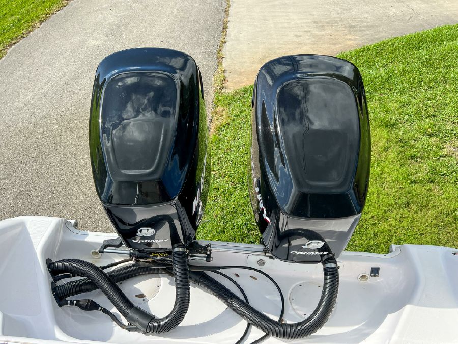 Garmin GPS, Fusion Audio sound system, updated Mercury SmartCraft gauges, Lenco trim tabs, cockpit lights, cabin lights, spreader lights, windlass, swim ladder, baitwell, full boat cover, and Continental tandem axle aluminum trailer included.