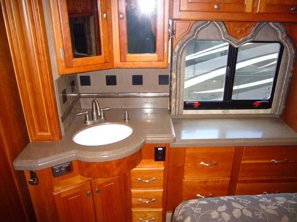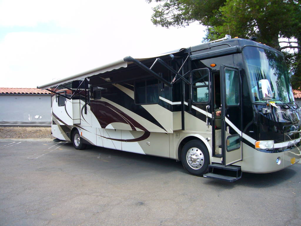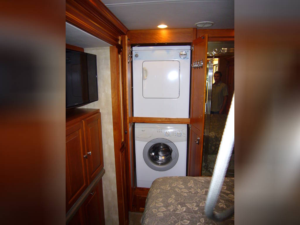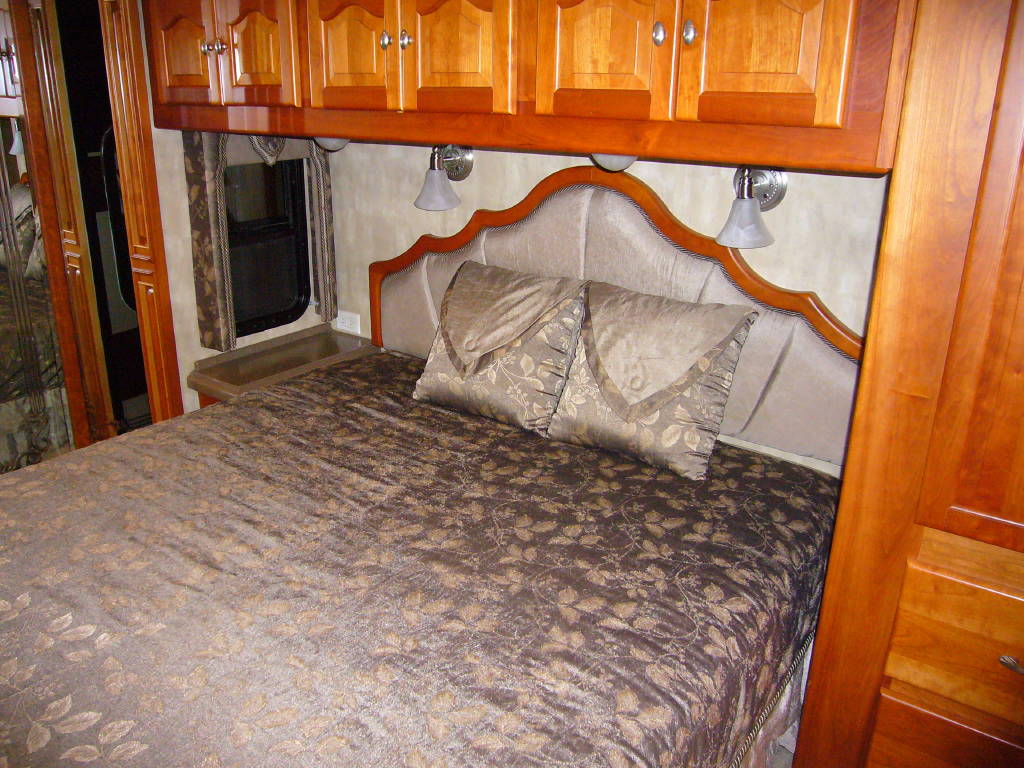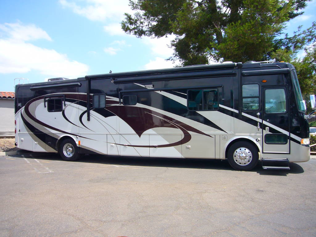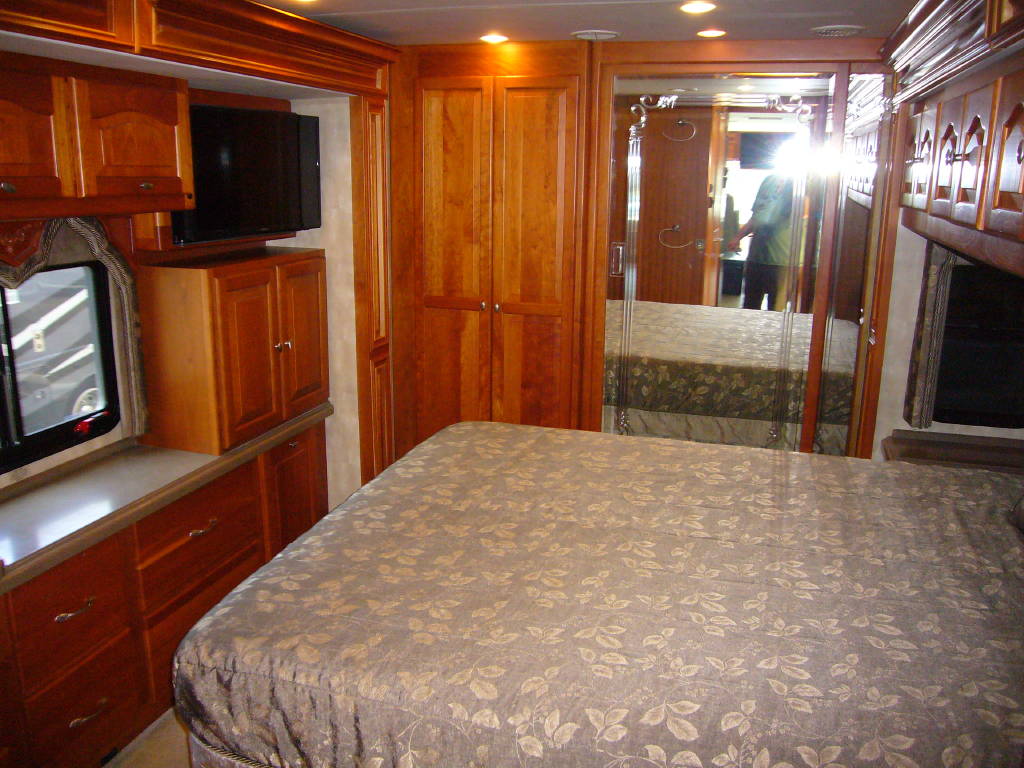 2008 Tiffin Allegro Bus (40QSP) with 4 slides and 64,793 miles and in excellent condition. Solid cherry cabinets with beautiful matching earth tone fabrics. This is the most desired and hardest to find floor plan for this model. The RV is approximately 40′ in length and has a 400 HP ISL Cummins Diesel with side drafted hydraulic cooling with an Allison 3000 6 speed MH transmission on a Spartan chassis with Tutthill Independent Front Suspension with VIP soft touch and smart wheel, 7.5 KW Onan diesel engine on slide just serviced by Cummins, power patio and door awnings, slide-out room toppers, Hydra Unlimited Heat, 50 Amp power cord reel, pass-thru storage, full length slide-out cargo trays, power water hose reel, 10K lb. hitch, automatic hydraulic leveling system, back-up camera with side cameras, Xantrax inverter, ceramic tile floors, solid surface, dual ducted roof A/Cs with heat pumps, kitchen dishwasher and 2 HD TVs and satellite, central vacuum system, stackable washer and dryer, residential Samsung refrigerator freezer with ice maker, upgraded main cabin led bulbs. Front outside screen and wheel covers.. Well maintained and cared for. Chassis and house batteries are one year old. This coach is stunningly beautiful and is an amazing luxury motorhome.