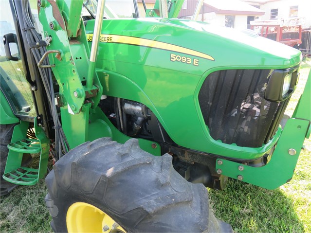 2009 John Deere 5093E with John Deere 563 Self Leveling Loader, 12 Speed Synchro Transmission with Power Reverser, Quick Attach Loader with Quick Attach Bucket, 4WD., 3pt. Hitch with Top Link, 540 / 540E PTO, 1 Set HYD. Outlets, Differential Lock, Tilt Steering, Power Steering, Cab Heat Cold Air, Front Wiper, 2 Entry Doors, AM / FM Stereo with AUX. Port, Sun Visor, Rear View Mirror, 2 Cup Holders This is a very nice 3022 hour tractor, the loader does not appear to ever have been used hard but does show some weathering.