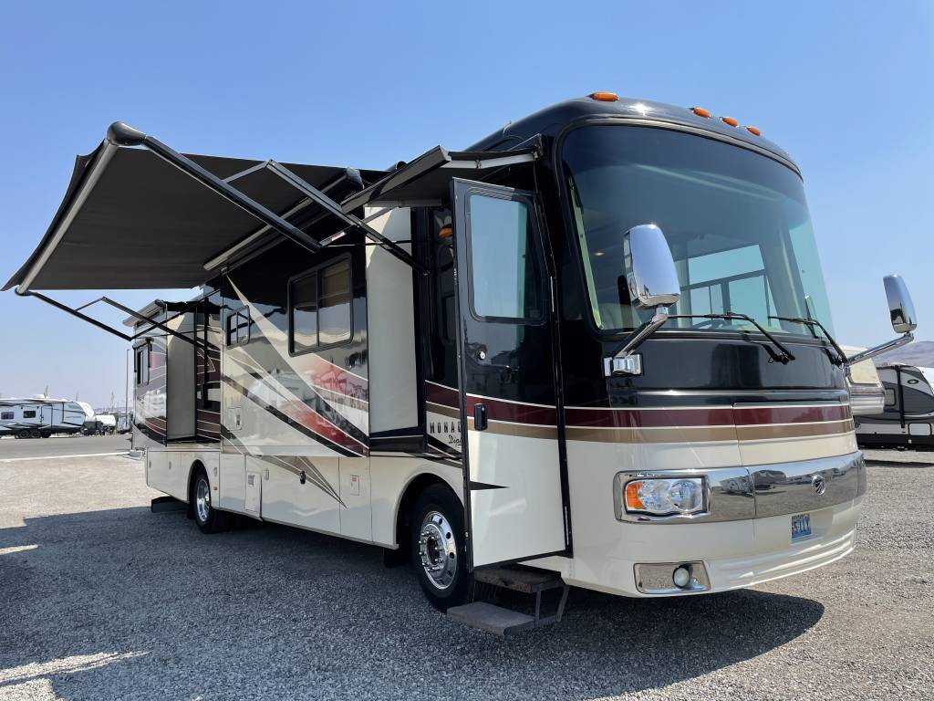 A beautiful 2009 Monaco Diplomat 38PDQ has arrived! The Diplomat is powerful with a 400HP Cummins Diesel Pusher engine and an automatic Allison Transmission, granting a 10,000lb Tow Capacity. You won’t find many powerful, quad-slide coaches out there UNDER 40ft!