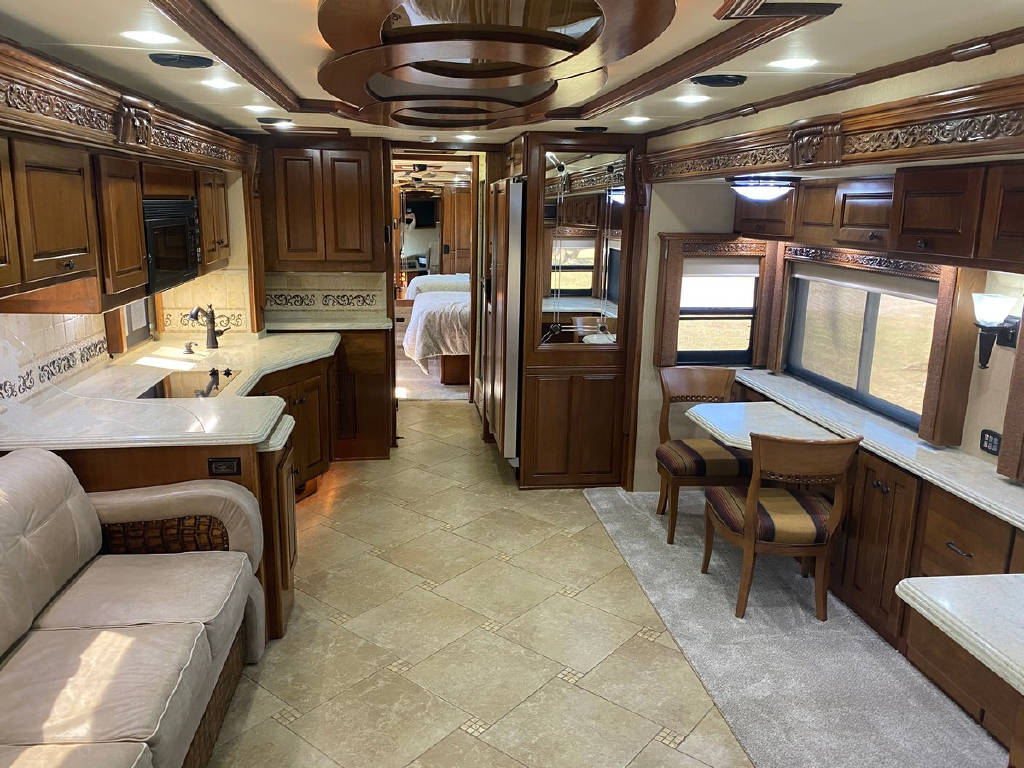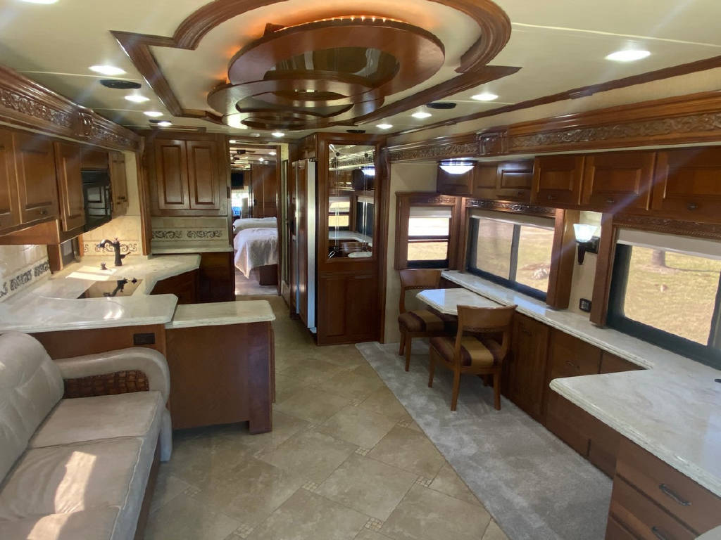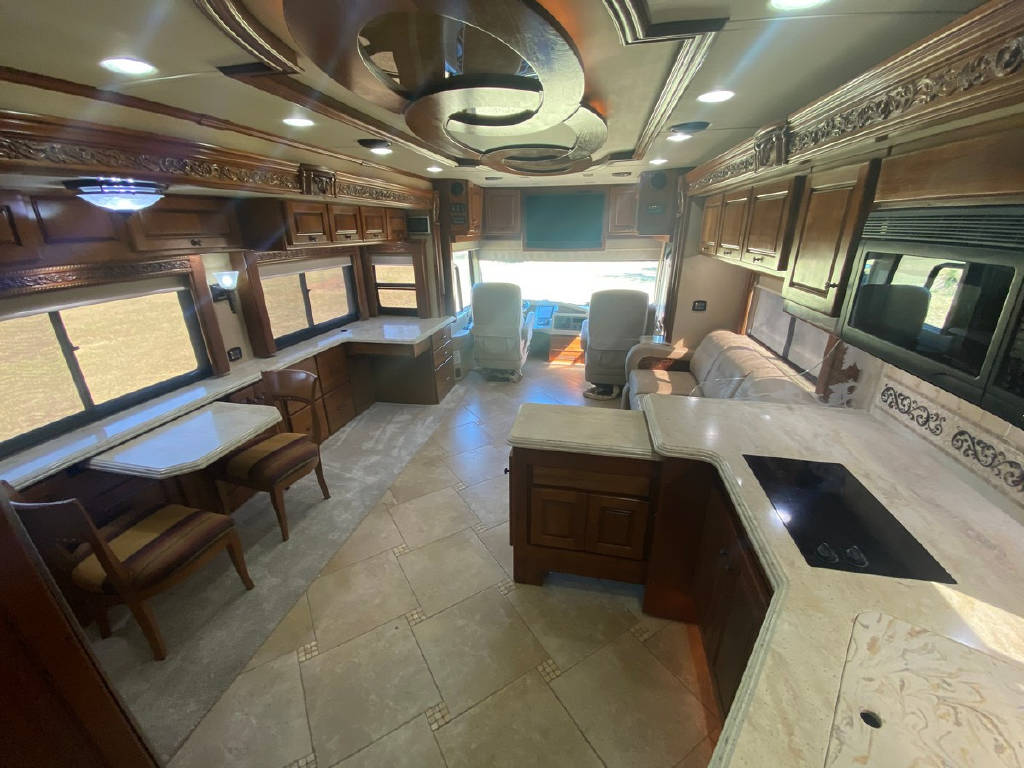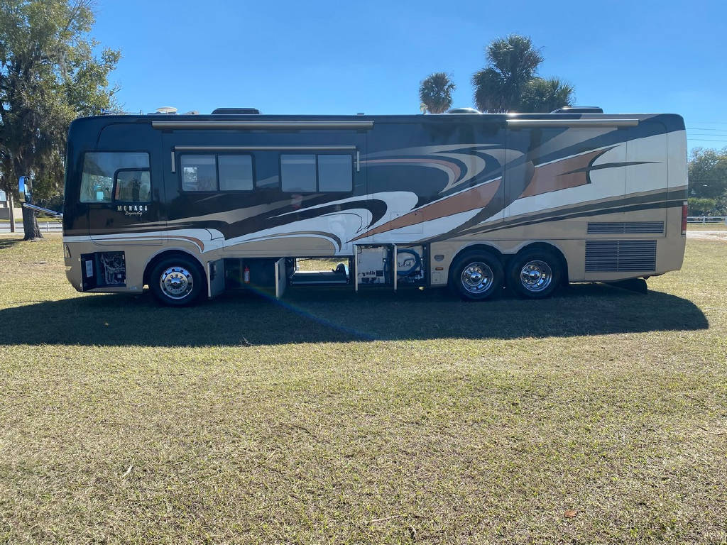 2009 Monaco Dynasty Bishop IV 4 slide motorhome with 62876 miles. This coach is on a Roadmaster Chassis powered by a 500HP Cummins Diesel Engine with Allison Transmission. This coach has everything including Aquahot, HD TVs, Stacked Washer/Dryer, Residential Fridge, New Tires & more !!!!