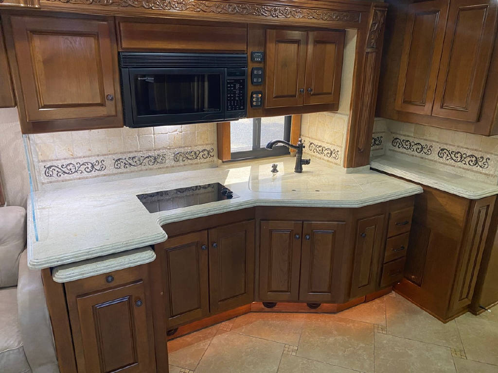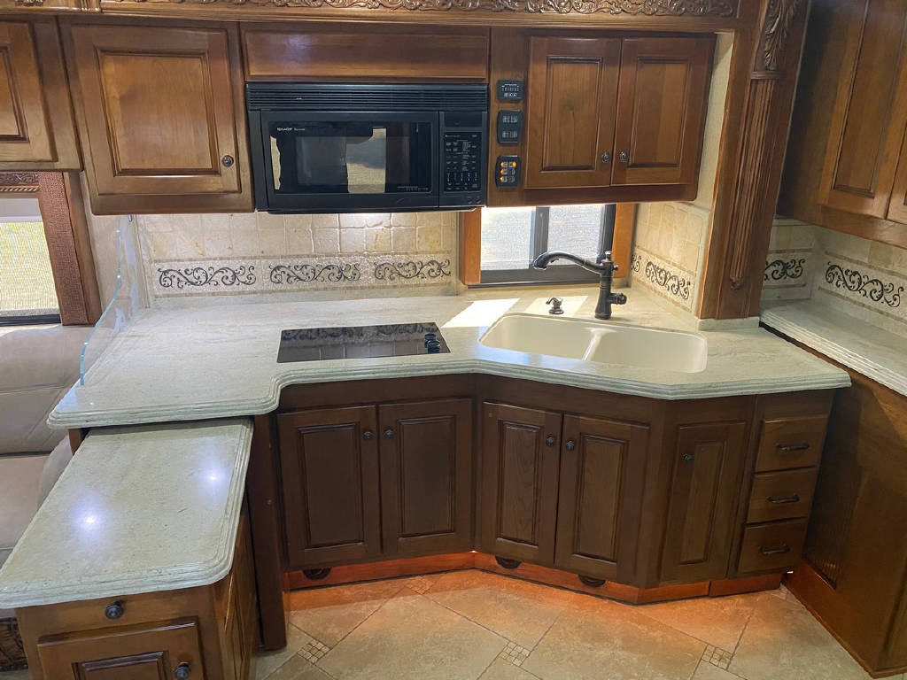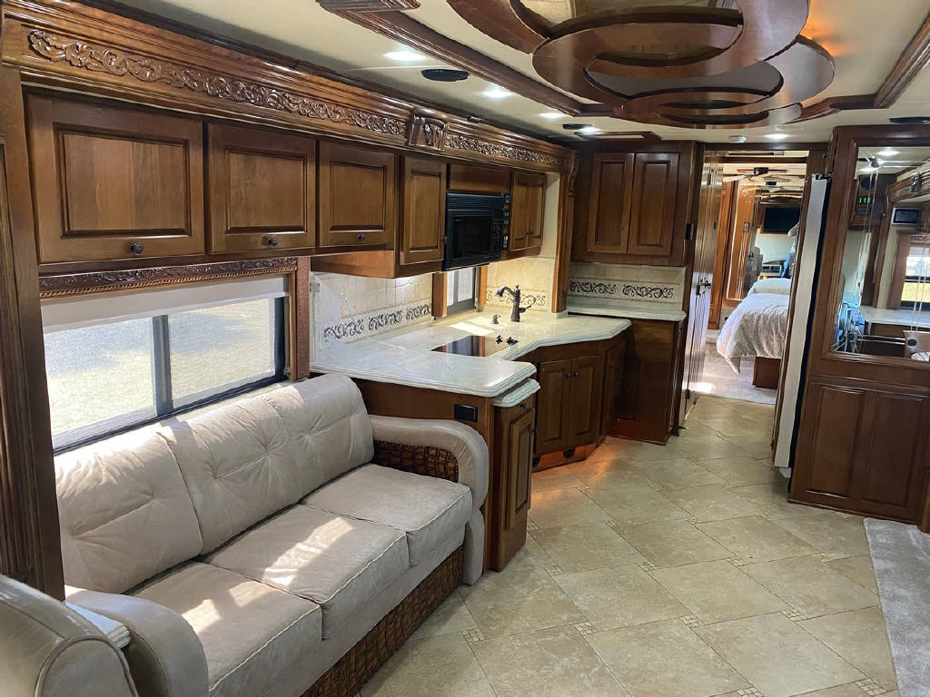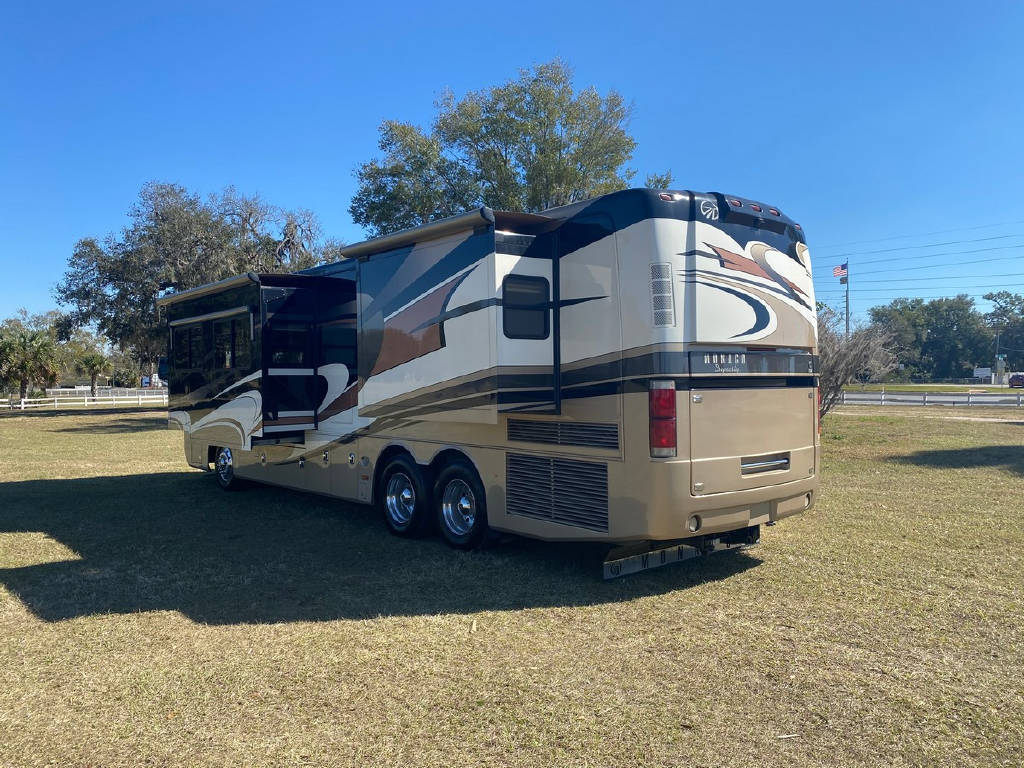 2009 Monaco Dynasty Bishop IV 4 slide motorhome with 62876 miles. This coach is on a Roadmaster Chassis powered by a 500HP Cummins Diesel Engine with Allison Transmission. This coach has everything including Aquahot, HD TVs, Stacked Washer/Dryer, Residential Fridge, New Tires & more !!!!