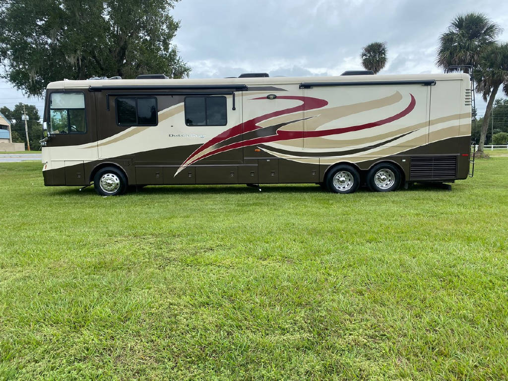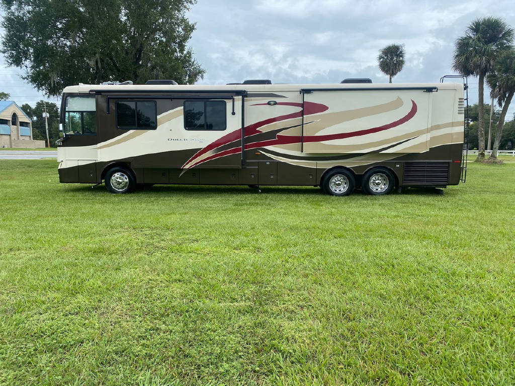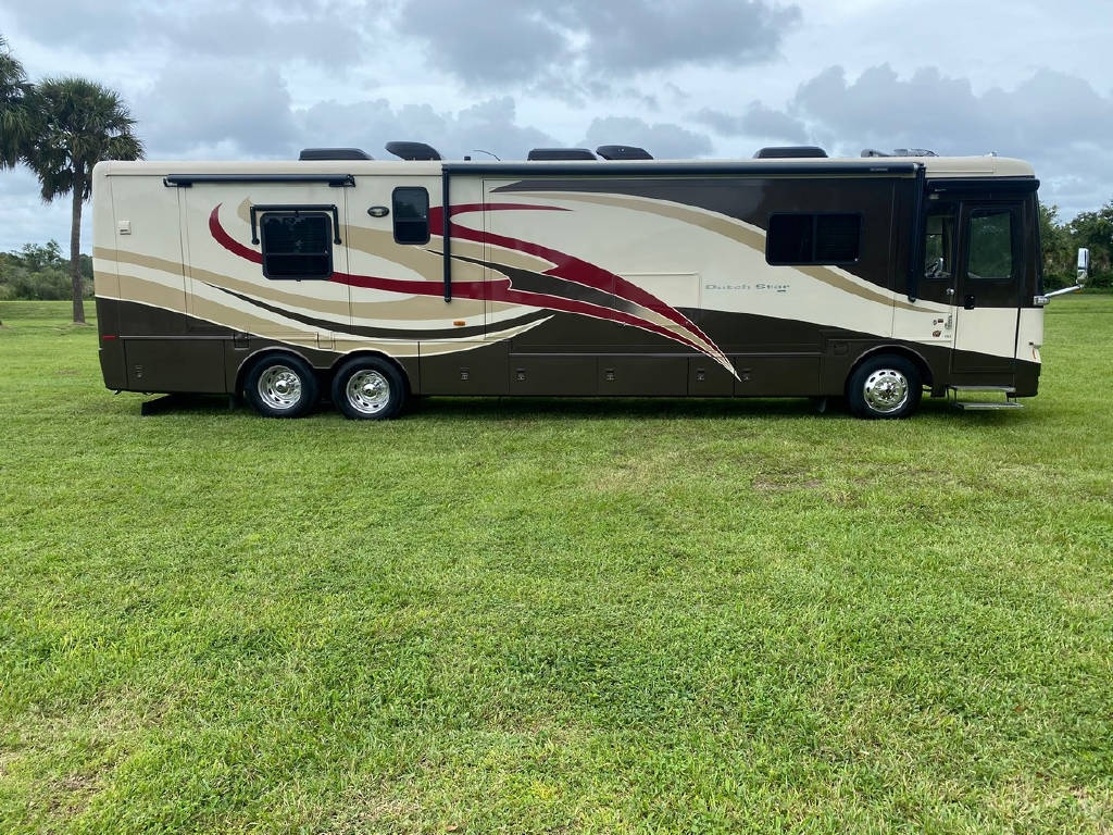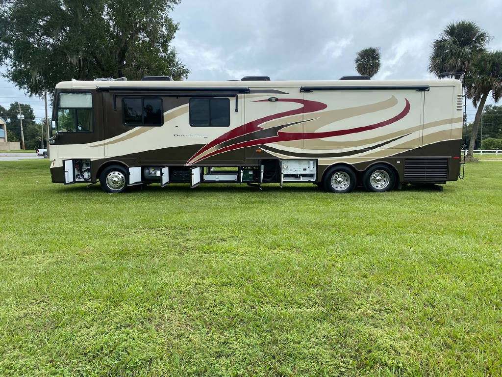 2011 Newmar Dutch star 4353 4 slide motorhome with 53,424 miles. This coach is on a Freightliner chassis powered by a 400HP Cummins Diesel with Allison Transmission. This coach has everything including comfort drive, tile floors, residential fridge, King bed, HD TVs, outdoor entertainment, pass-through storage & more !!!