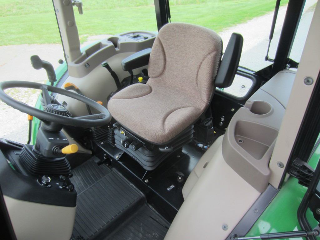 C/H/A, MFWD, John Deere 553 Loader, 500 Series 80″ QT Bucket, Joystick Control, 12 x 12 Trans, Left Hand Reverser, 53 Hours, 55 Engine/45 PTO HP, AM/FM/CD, Grill Guard, 1 Remote, Toplink, 16.9-28 98%, 9.5-24 98%