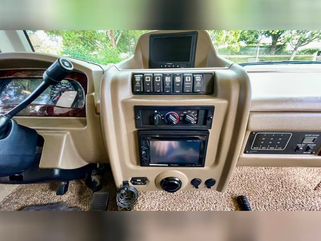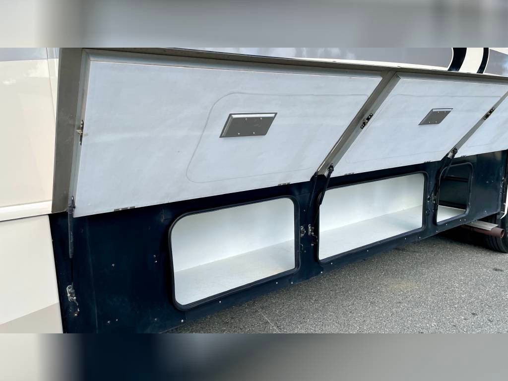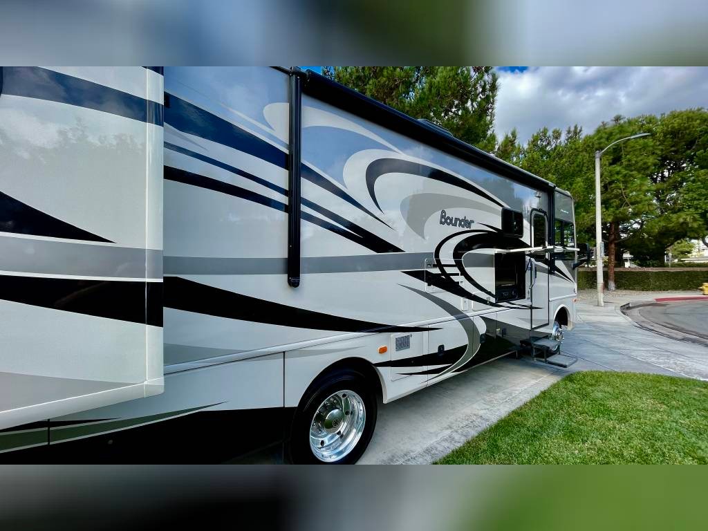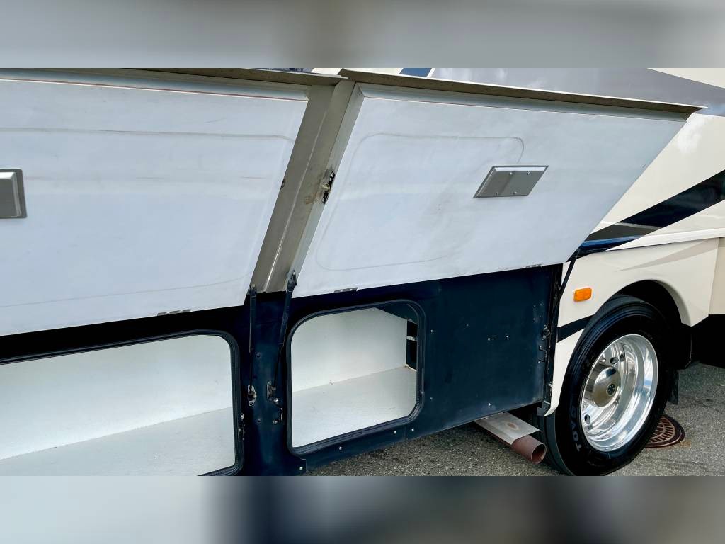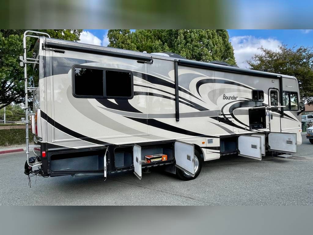 HIGHLY Polished paint all around will be the envy of all your neighbors and on the patio you have a power awning, a 32 inch Sony TV with DVD Stereo. On the patio this Bounder has strong and easy to clean storage areas. If they get real dirty, you can even hose them out. The full-size living room slide on the driver side has its own basement storage and moves with wall so there is no bending under a slide to find your stuff.The RV QG5500 Onan 50 amp generator runs smooth and quiet and powers everything including the 2 AC’s and 4 TV’s for fun all around.