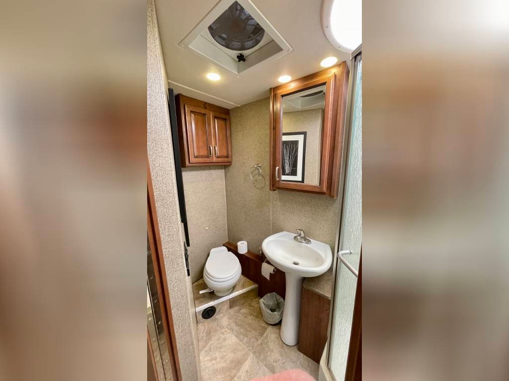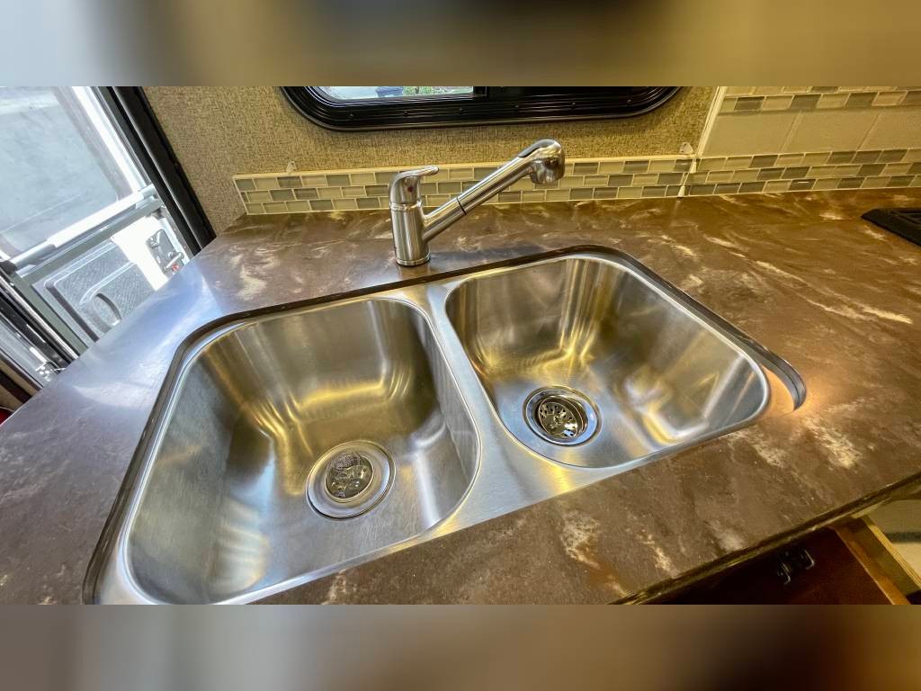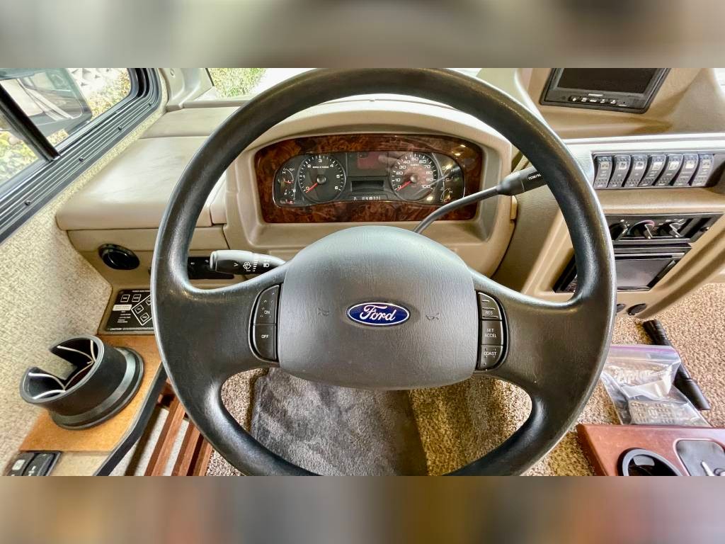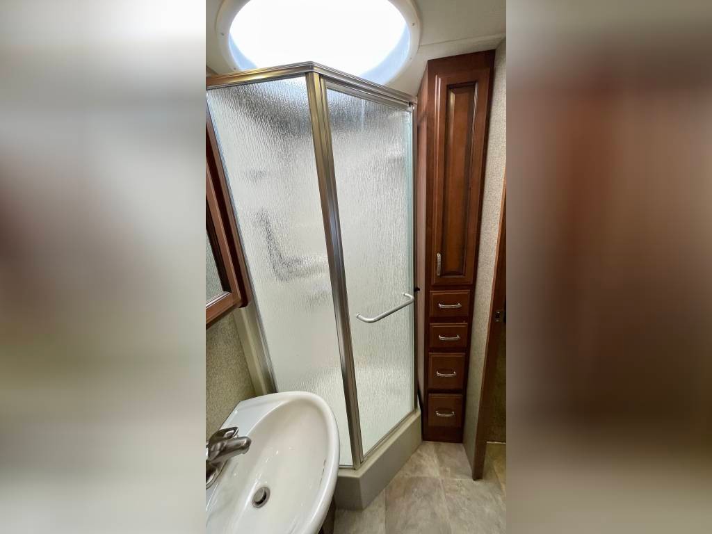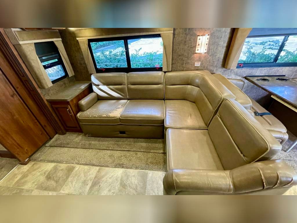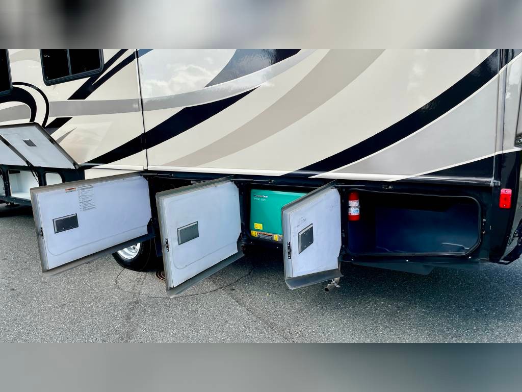 HIGHLY Polished paint all around will be the envy of all your neighbors and on the patio you have a power awning, a 32 inch Sony TV with DVD Stereo. On the patio this Bounder has strong and easy to clean storage areas. If they get real dirty, you can even hose them out. The full-size living room slide on the driver side has its own basement storage and moves with wall so there is no bending under a slide to find your stuff.The RV QG5500 Onan 50 amp generator runs smooth and quiet and powers everything including the 2 AC’s and 4 TV’s for fun all around.
