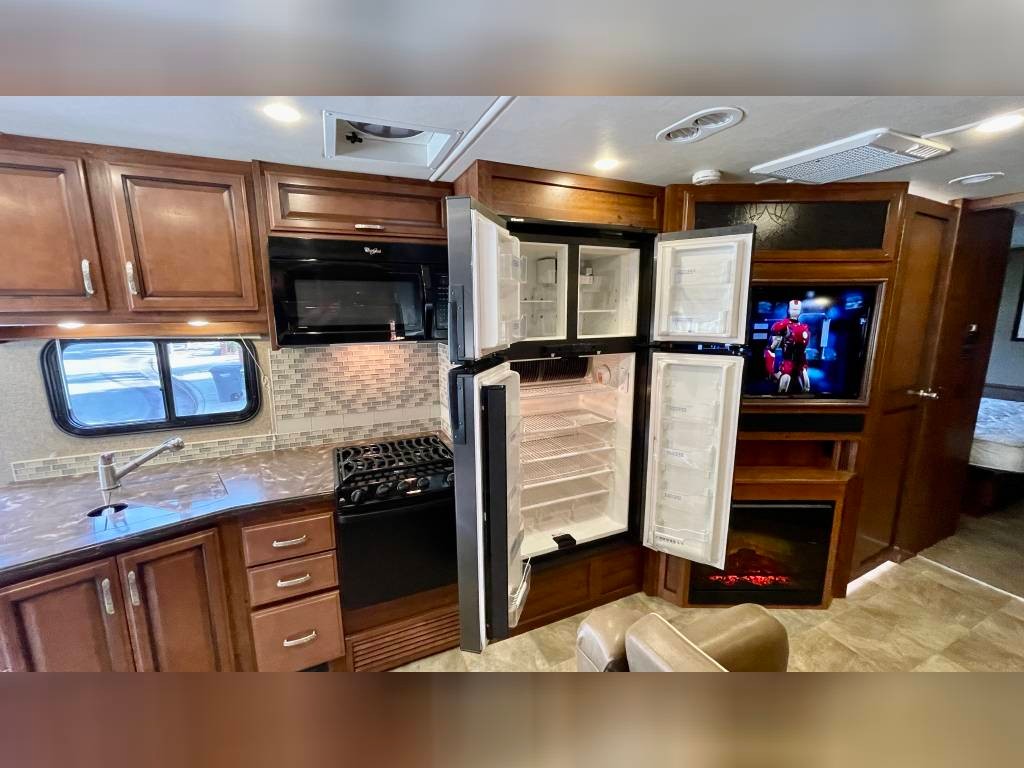Kitchen has solid surface counters, three burner gas stove with oven and a huge refrigerator large enough to keep all the snacks & drinks cold while you enjoy the fireplace and 42 inch Sony smart TV in the living room, including Blu-Ray, DIRECTV and surround sound. Step back to the Masterbed room and fall asleep in your King Size bed, while watching a 32 inch smart Sony TV, with 2nd DIRECTV and DVD all ready to go with matching comforter, tons of storage plus a full size wardrobe closet.