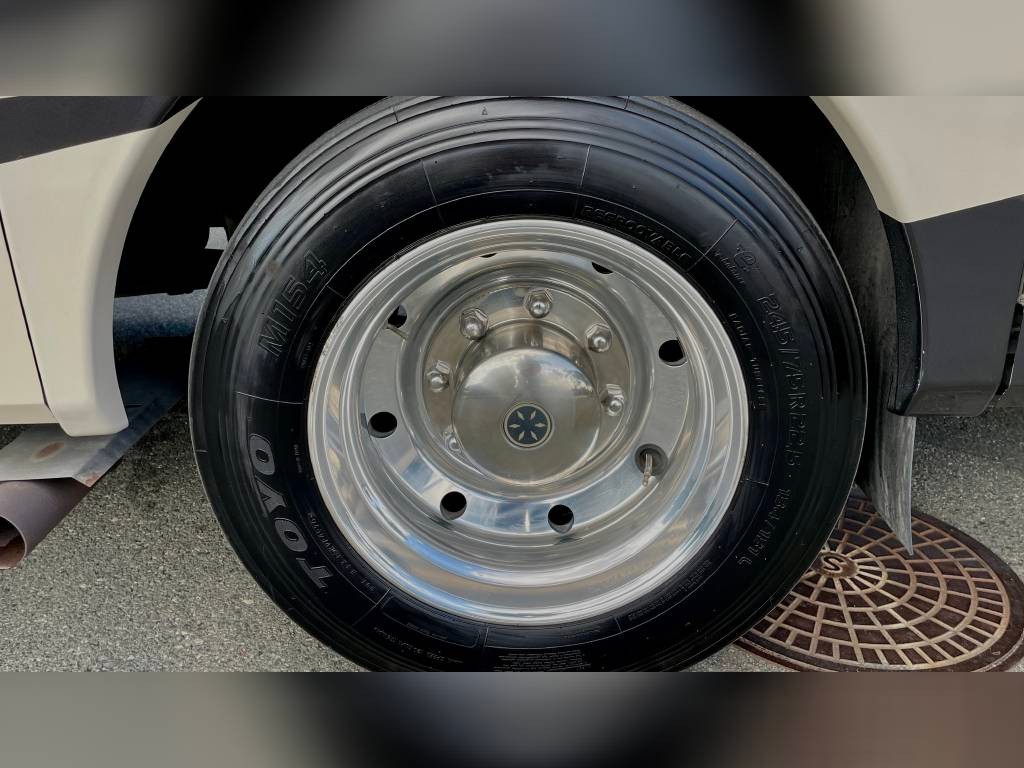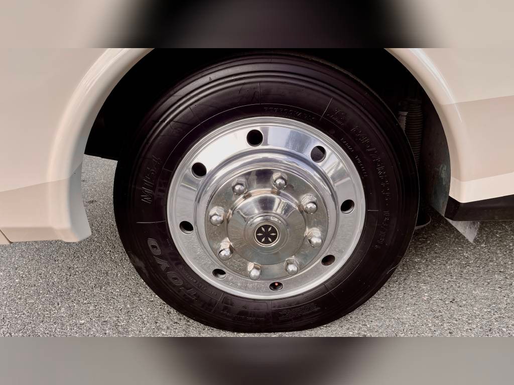 Aluminum rims polished and ready to go with all Toyo tires less than a year old. Aluminum rims cost more when new but are lighter weight than steel rims and give you a much better ride since they respond faster with the suspension and also give you better fuel economy as they are lighter to turn. Plus they look amazing amazing!