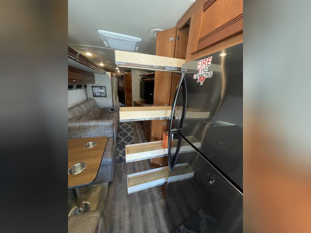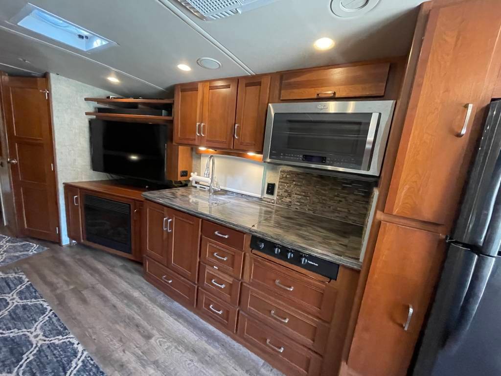 Full passenger side slide out and bedroom drivers side slide
