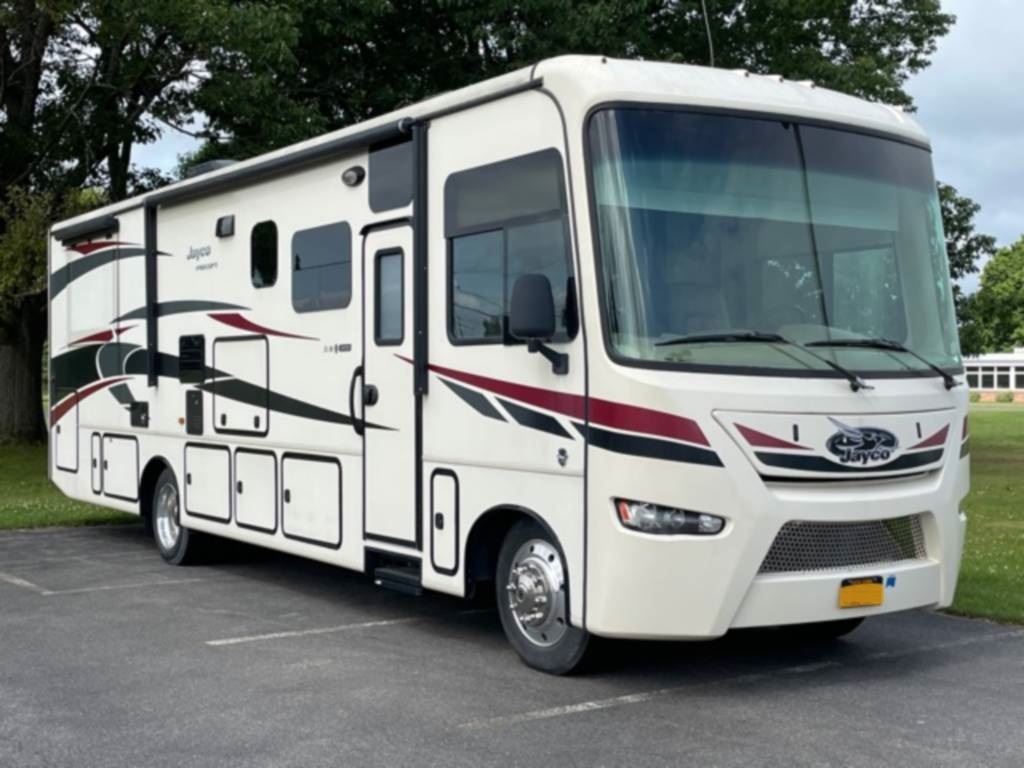 Very clean. Sleep 7 adults or 6 with 2 kids very comfortably. 2 AC units. TV antenna. Power awning. Outdoor shower. Upgraded V-Max power cells. Upgraded Kenwood driver entertainment center with Apple Car Play. Precept quiet drive ceiling really cuts down on the road noise. Brand new tankless hot water heater. Couch and dinette with lots of seatbelts. Low miles and low hours on the huge Cummins 5500 generator. TONS of storage space. Comes with RV cover for winter storage.