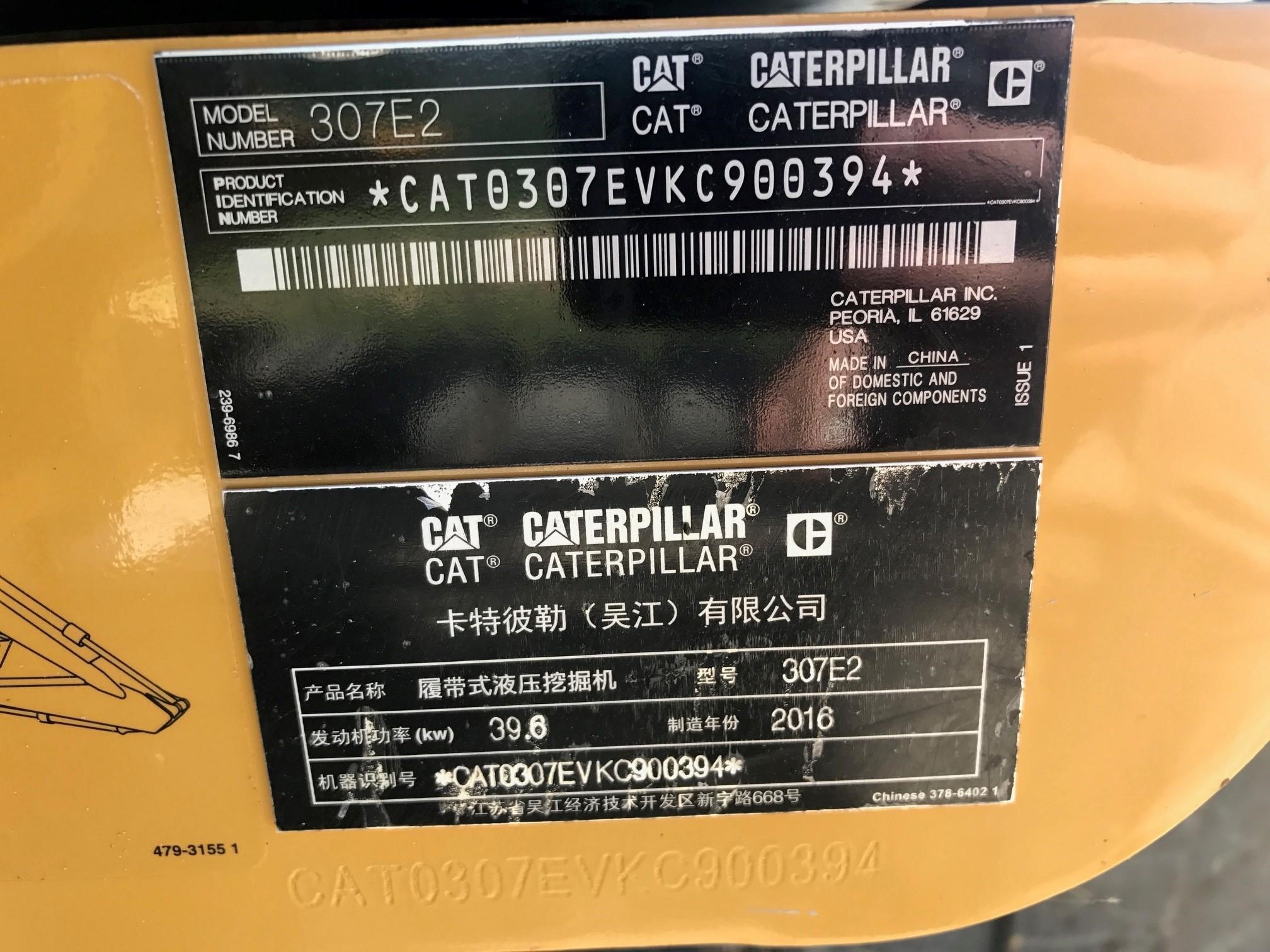2016 CATERPILLAR, 307E2 Excavators – 1,893 hours, Crawler, Crawler Excavator, 18″ Steel Tracks w/Rubber Pads, A/C, Heat, Radio, 91″ Dozer Blade, CAT 24″ Bucket w/CAT Hydraulic Thumb, Auxiliary Hydraulics, CAT Telematics, Backup Camera.