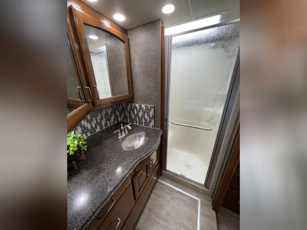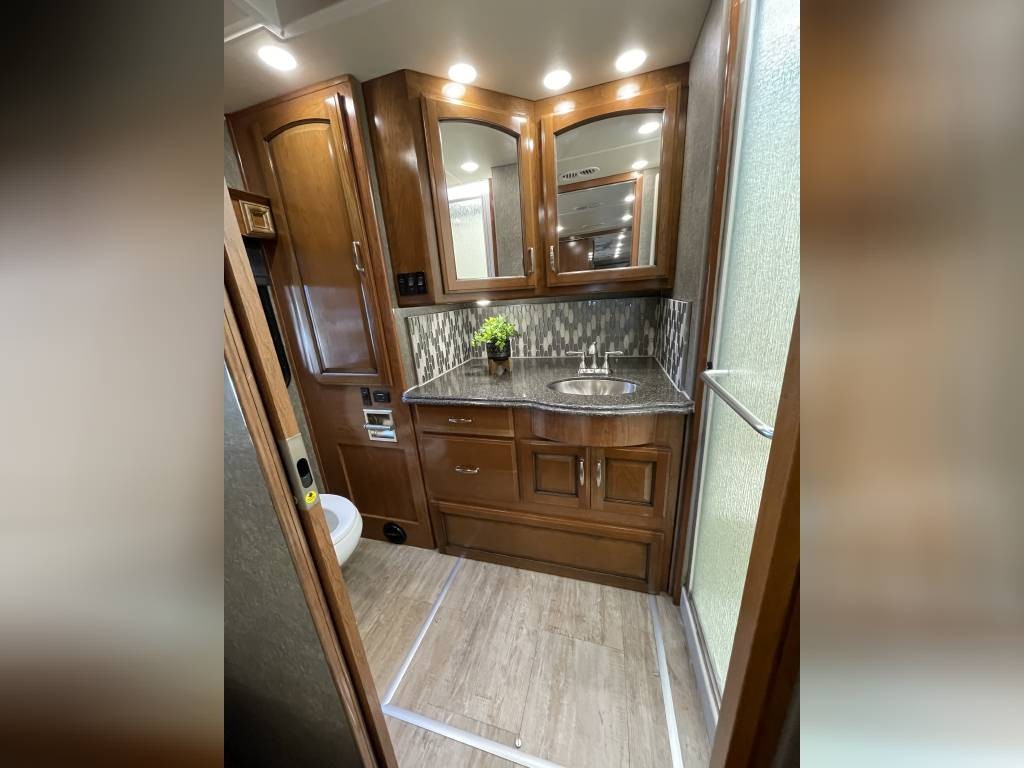 Full body paint high quality gelcoat fiberglass exterior rollout basement storage drawers pass-through storage Beautiful luxurious floorplan leather interior granite countertops real wood cabinetry full kitchen with oven Bath and a half Master bedroom suite with king size walk around access bed large rear restroom Power everything fully loaded too many options to list like new