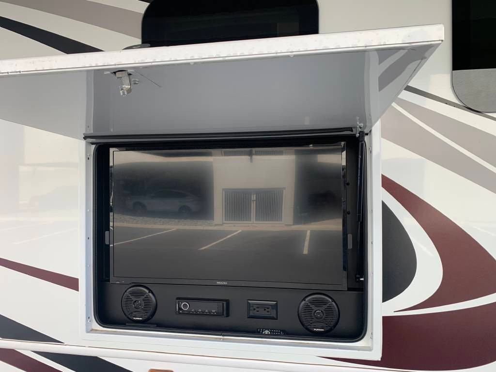 Heated Mirrors, Power Seats, 2 Air Conditioning Units, Full Swivel Seats, Mounted Card Table, Power Sun Visor, Color Backup Camera, Bluetooth Stereo, Power Overcab Dropdown Bunk, Large Flatscreen TV, Booth Dinette folds into Bed,, Sofa with Foldout Bed, Solid Surface Countertops, Sink with Stainless steel fixtures, Range top Microwave, 3 burner Stove with Oven, Backslash, Large 4 Door Refrigerator, slide out drawers, lots of additional storage, Porcelain Toilet, Large Walk-in Shower, Bathroom Cabinets, Close off Bedroom, Walk-around King Size Bed, Large Wardrobe, Lots of Cabinets & Drawers, Bedroom Flatscreen TV, and Much more