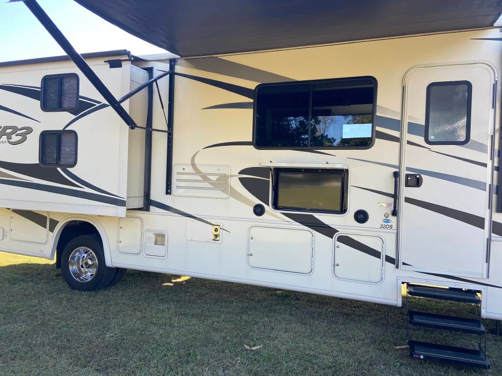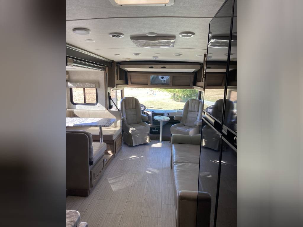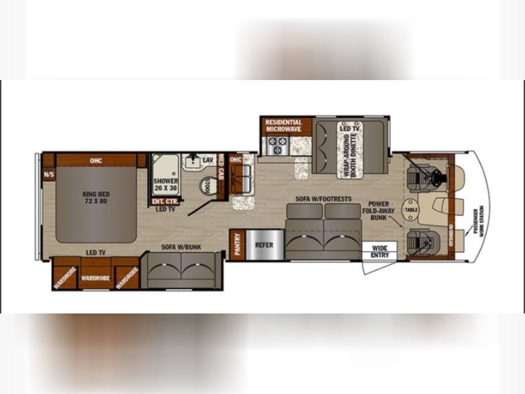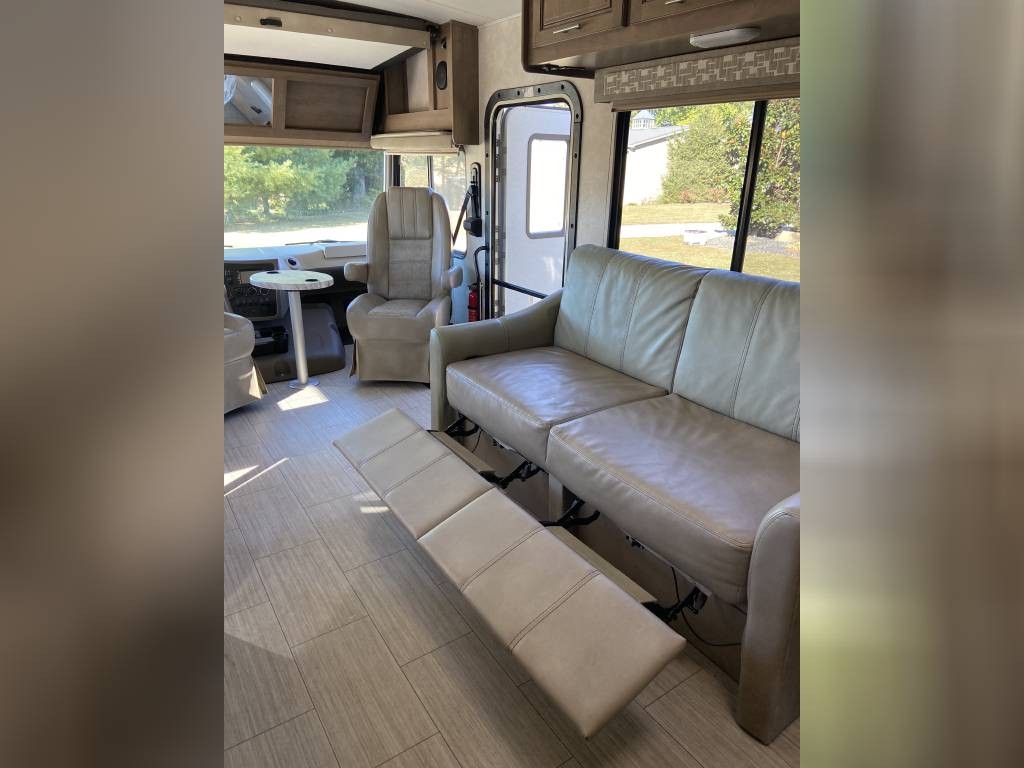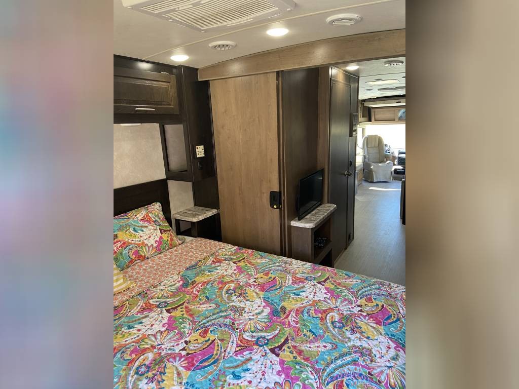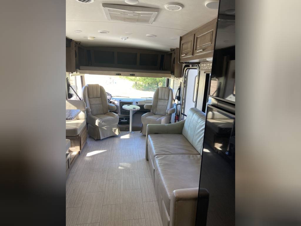 This RV is in excellent condition inside and out. It’s perfect for the whole family with all the sleeping options. King size, private master in rear with lots of wardrobe and drawer space. Bottom bunk is full size and folds up to a couch with seatbelts and a TV that is ideal for the kids on the road. Couch in main area reclines and also folds out into a bed. There are 8 seatbelts total. Upgraded full size ceramic toilet. Electric awning with LED lights. Outdoor entertainment system. Power drop down queen bunk. Power sunshade for the windshield. Side view and back up cameras. Plenty of storage underneath with extra large pass through space in rear. Automatic levelers to make setup quick and easy.