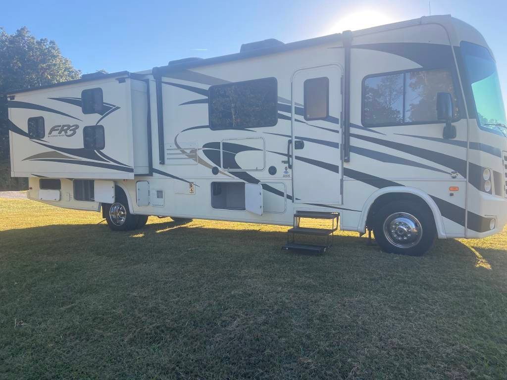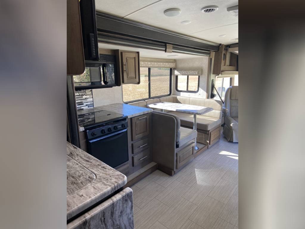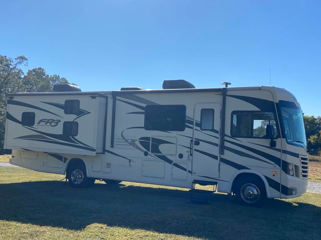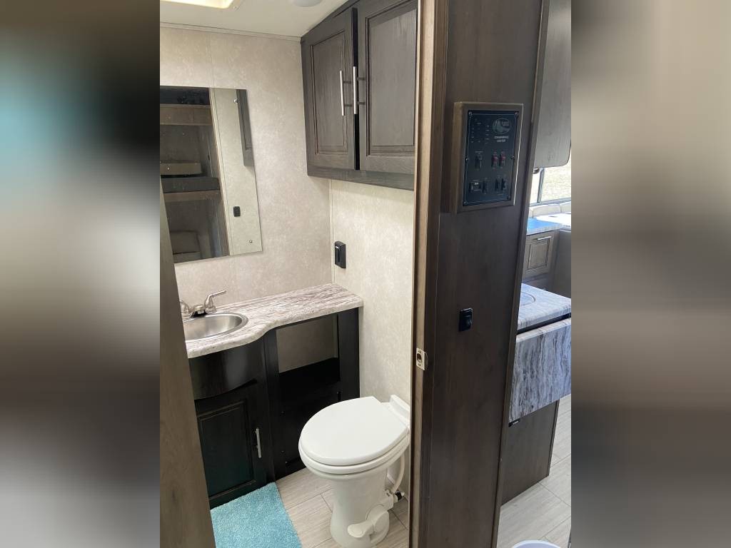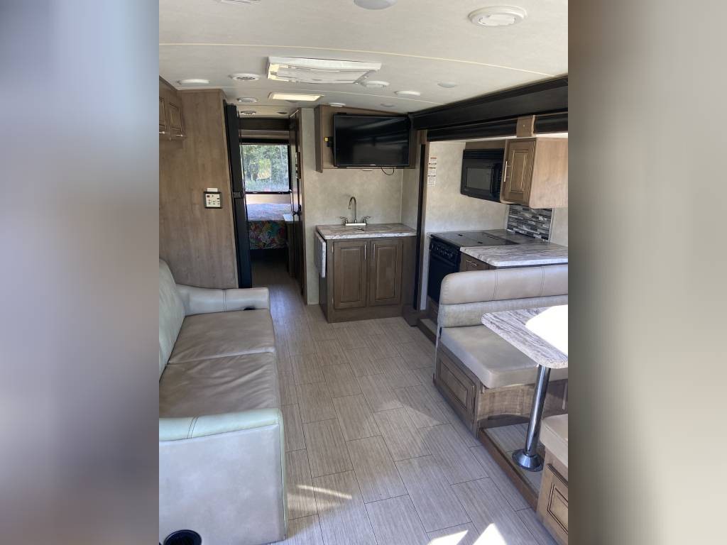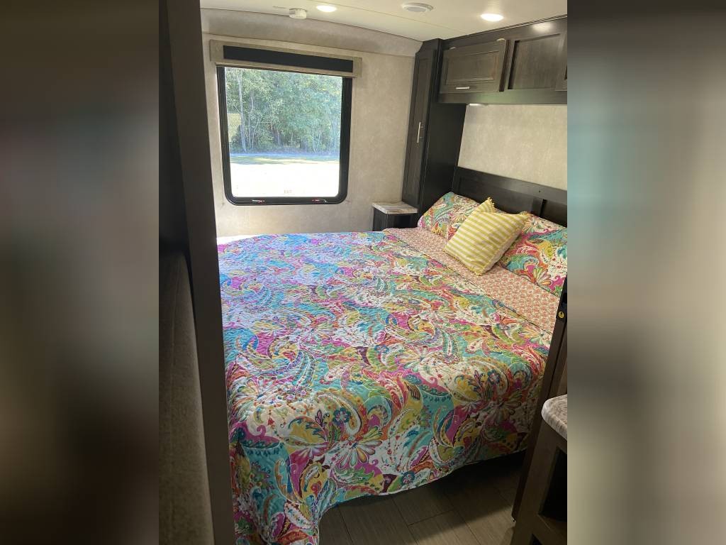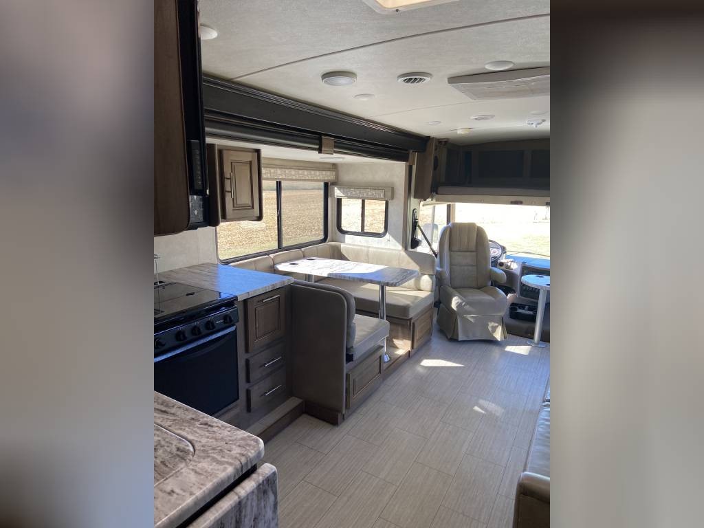 This RV is in excellent condition inside and out. It’s perfect for the whole family with all the sleeping options. King size, private master in rear with lots of wardrobe and drawer space. Bottom bunk is full size and folds up to a couch with seatbelts and a TV that is ideal for the kids on the road. Couch in main area reclines and also folds out into a bed. There are 8 seatbelts total. Upgraded full size ceramic toilet. Electric awning with LED lights. Outdoor entertainment system. Power drop down queen bunk. Power sunshade for the windshield. Side view and back up cameras. Plenty of storage underneath with extra large pass through space in rear. Automatic levelers to make setup quick and easy.